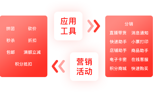 · 子商户可独立设置营销活动,并支持使用多种应用工具,满足不同的营销应用场景。