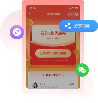 可设置用户分享优惠券后,第N个领取人获得最大金额N元的方式提高裂变效果,或以领取随机金额优惠券的方式提升活动趣味性。