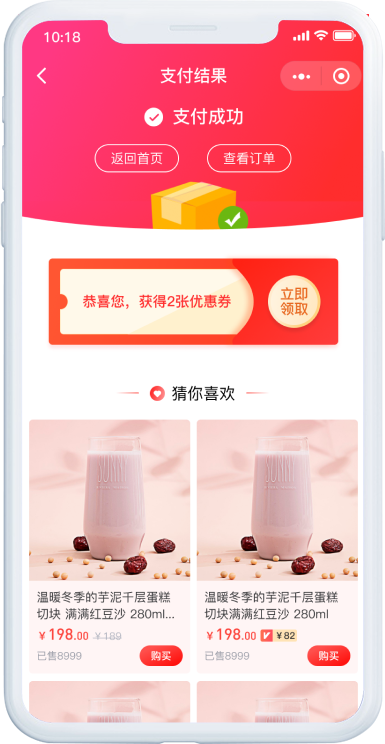 活动期间,在支付成功页面和订单详情页面的明显位置会显示分享优惠券按钮,点击即可将优惠券分享给微信好友。