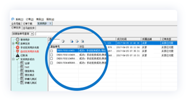 网店管家软件可同步玖星SASS发货订单的原始单号、成交时间、订单类型、发货时间、收件人、发货单号及发货方式