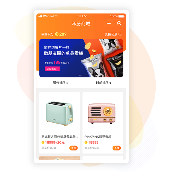 纯积分、积分+付费两种购买方式自由添加,提升兑换体验,促进用户留存。
